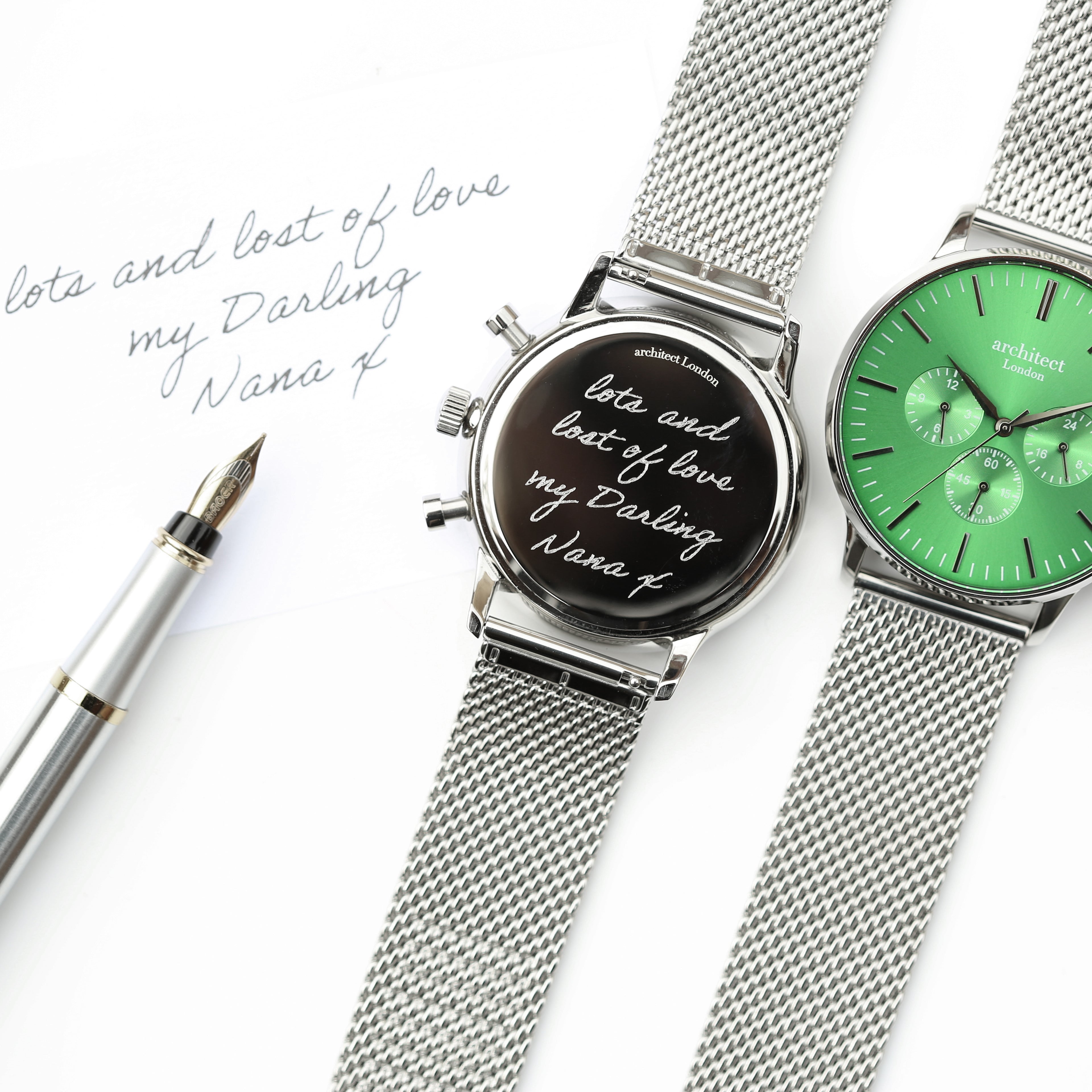 Our unique watches that are designed to last a lifetime. Architect watches are handcrafted to perfection and are designed to have a large engravable back for a special message of your choice. We can even personalise the watch with your own actual handwriting.